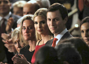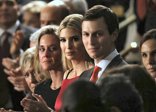 Ivanka Trump (C), her husband Jared Kushner (R) applaud another