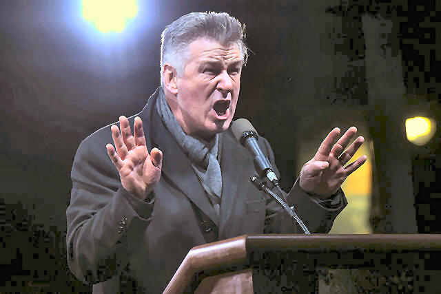 Actor Alec Baldwin speaks at a protest against U.S. President-elect