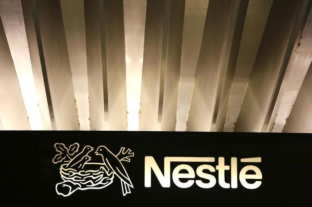 The Nestle logo is pictured on the company headquarters entrance building in Vevey, Switzerland February 18, 2016. REUTERS/Pierre Albouy |