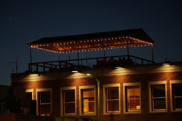 Employees sit around a table atop a Snap Inc. office in Venice, a beach