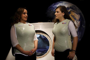 Women wearing prototypes of Stemrad's new protective vest, Astrorad,