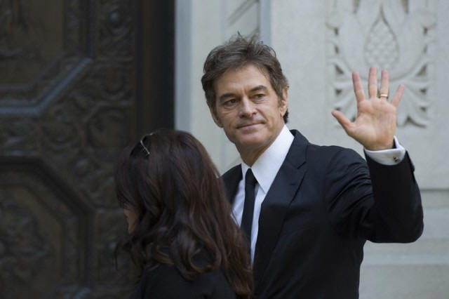 Television personality Dr. Mehmet Oz arrives to attend the funeral