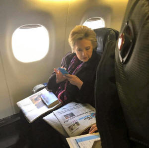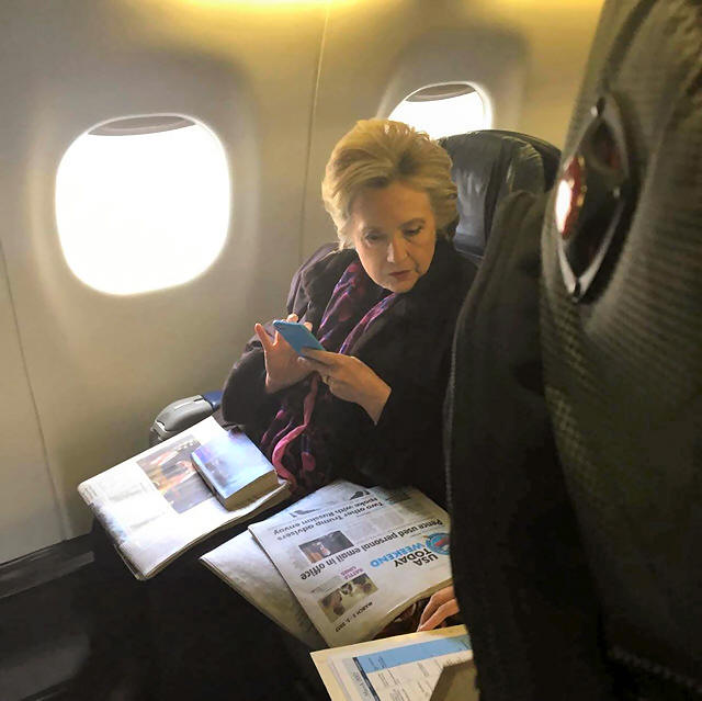 Clinton was on an airplane traveling from Boston to New York on Friday