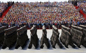 Soldiers of China's People's Liberation Army (PLA) march during the