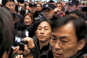 from the chaotic scene by Chinese police before he was able to make any