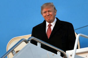 President Donald Trump arrives aboard Air Force One, returning to