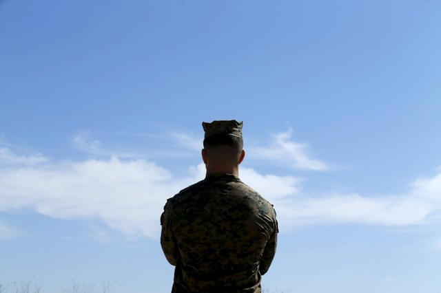 A U.S. Marine looks at the sky in California February 26, 2016.