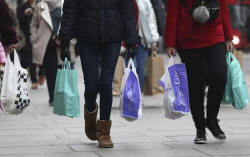Shoppers carry bags on Oxford Street in London, Britain December 18,
