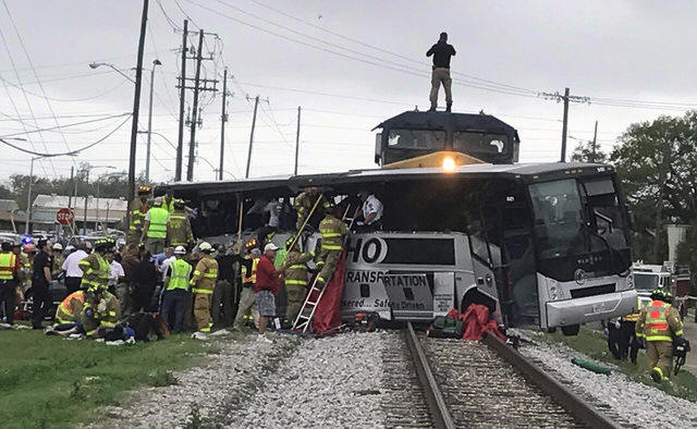 charter bus at a railroad crossing in Biloxi, Mississippi, on Tuesday,