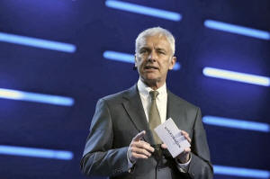 Volkswagen CEO Matthias Mueller speaks during Volkswagen event ahead of