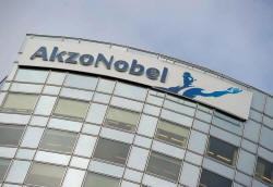 AkzoNobel's logo is seen in Amsterdam, Netherlands, February 16,