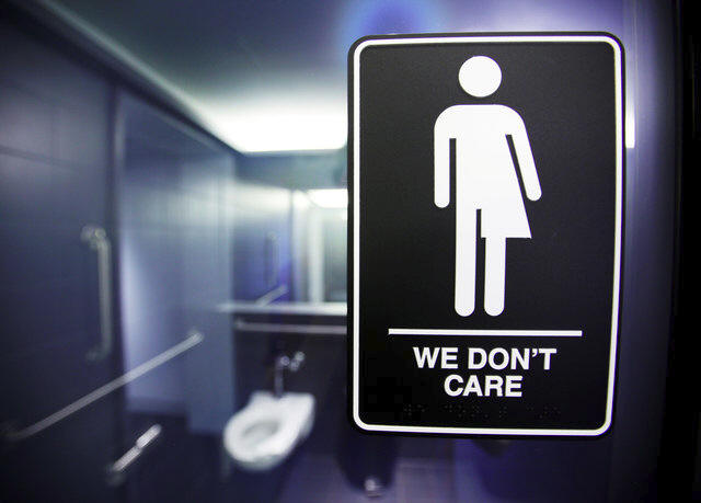 transgender bathroom access adorns the bathroom stalls at the 21C