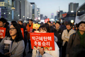 People attend a rally calling for impeached President Park