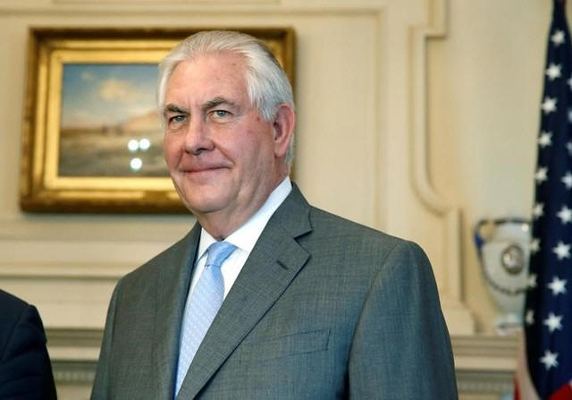U.S. Secretary of State Rex Tillerson stands during a meeting with