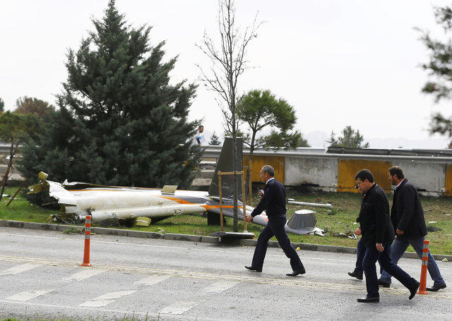 Wreckage of a helicopter is seen after it crashed in Istanbul,