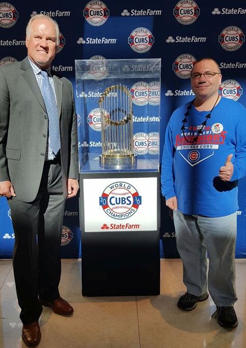 Most everyone knows that Tim McDougall is the LCHS Railer Basketball's number one fan, but aside from that, he is also a huge Cubbie Fan! This week, when Tim heard that the World Series Trophy was going to be in Springfield, it was a trip he just had to make. Once there, Tim not only got to see the historic trophy, but was able to meet Cubs legend Ryne Sandberg, and...he has the photo to prove it! Way to go Tim!!