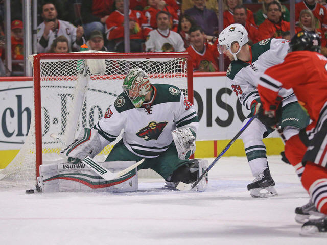 Wild goalie Darcy Kuemper (35) makes a save on a shot from