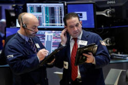 Traders work on the floor of the New York Stock Exchange (NYSE) in
