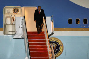 arrives aboard Air Force One at Joint Base Andrews, Maryland, U.S.