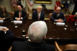 U.S. President Donald Trump (C) and Vice President Mike Pence