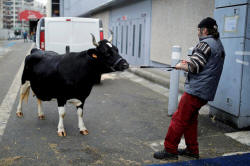 six-year-old Bretonne Pie Noir dairy cow named Fine, which is the