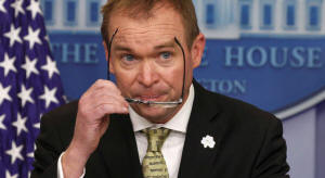 speaks about of U.S. President Donald Trump's budget in the briefing