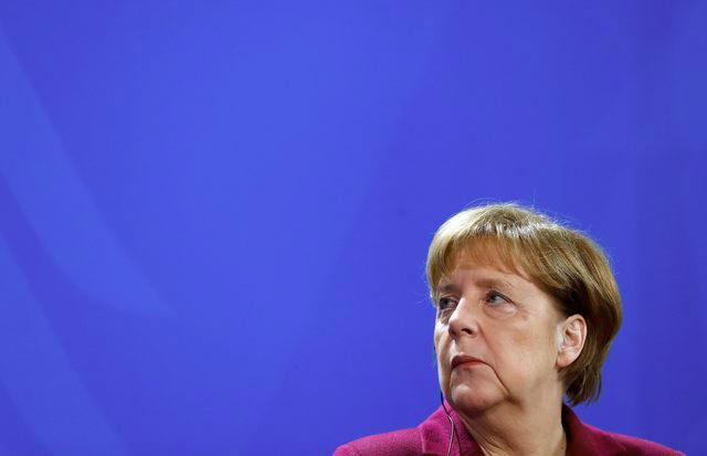 German Chancellor Angela Merkel gives a statement at the Chancellery