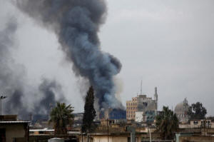 Smoke rises from clashes during a battle between Iraqi forces and