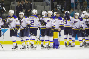 The Blues beat the Sharks 4-1 on Thursday to sweep the season series