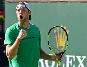 Jack Sock (USA) celebrates as he defeated Kei Nishikori (JPN) in his