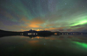 The Aurora Borealis (Northern Lights) is seen over the Bals-Fiord