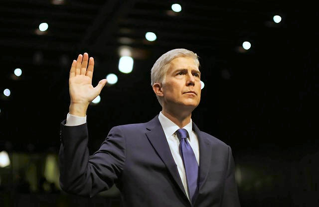 U.S. Supreme Court nominee judge Neil Gorsuch is sworn in to testify
