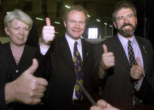 Sinn Fein President Gerry Adams (L) and Martin McGuinness (C)