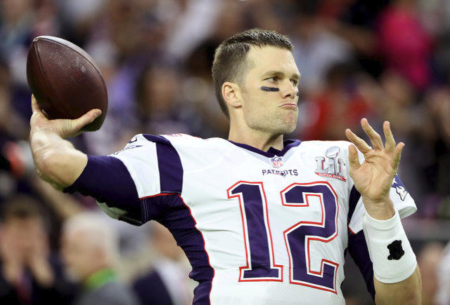 New England Patriots' quarterback Tom Brady warms up before the