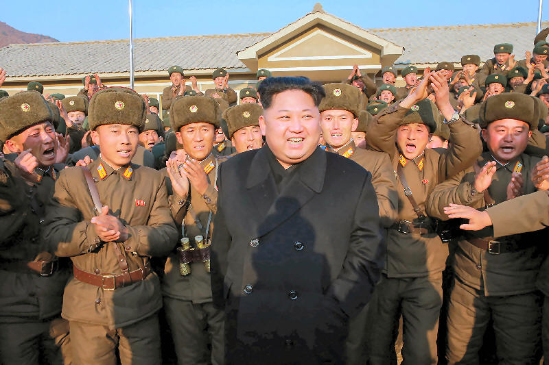 Korean leader Kim Jong Un inspects a sub-unit under KPA