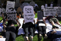 Demonstrator lay on the ground during a "die in" protest over