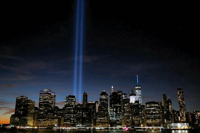 The Tribute in Light shines on the 15th anniversary of the 9/11