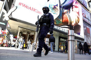 NYPD Counter Terrorism officer patrols in Times Square in New