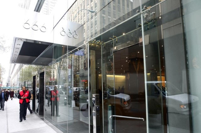 Passers-by walk near the office building at 666 Fifth Avenue in New