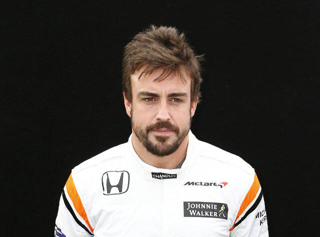 McLaren driver Fernando Alonso of Spain poses during the driver