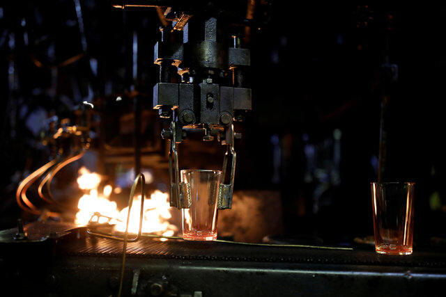 Glasses go under fire during production at the Duralex International