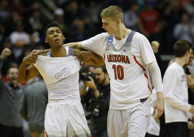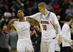 Arizona Wildcats guard Allonzo Trier (left) and forward Lauri