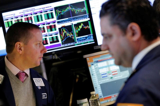Traders work on the floor of the New York Stock Exchange (NYSE)