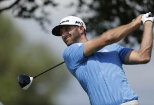 Dustin Johnson of the United States plays against Jon Rahm of Spain