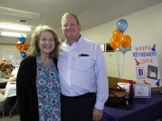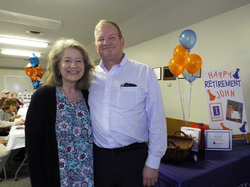 John and Sherry Fulton happily smile during the retirement reception held for John at the Logan County Extension Office. Both Fultons are retiring on the same day, March 31st, from very similar careers. While John has served Logan, Menard and Sangamon Counties as Extension Director; Sherry has been working at the DeWitt County Extension Office. Monday evening, the couple enjoyed well wishes from many of their Logan County friends and neighbors.