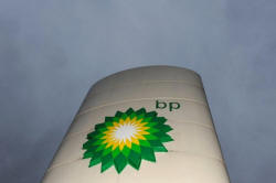 A British Petroleum petrol station logo is seen at Heathrow in