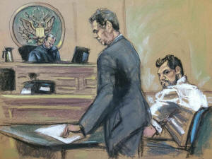 shown in this court room sketch with his attorney Gerald J. DiChiara