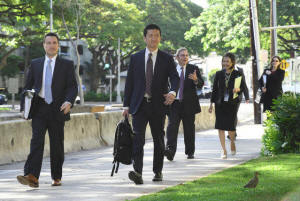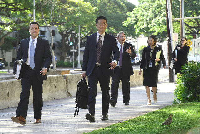 Hawaii Attorney General Douglas Chin (R) arrives at the U.S.