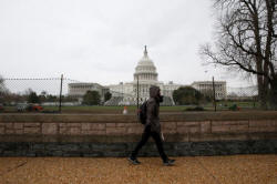 A pedestrian walks past the U.S. Capitol building , on Capitol Hill