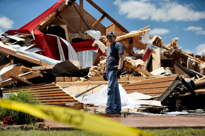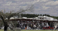 A business damaged by tornadoes is seen in Canton, Texas, April